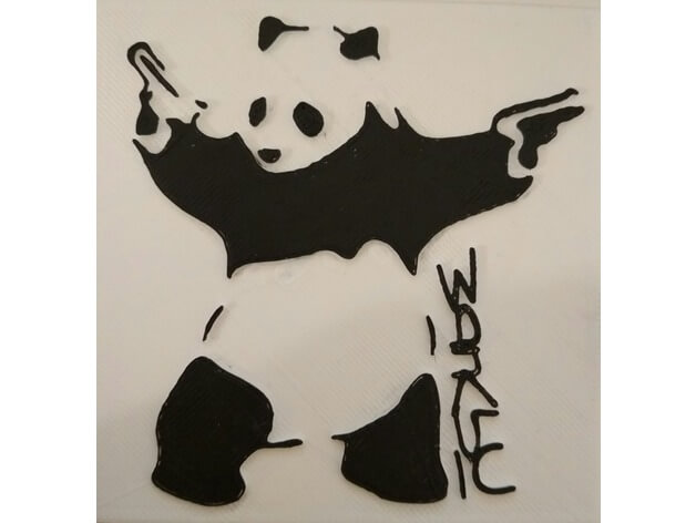 One is not quite sure whether the panda with one gun in each hand actually comes from Banksy. It was first sprayed incognito on a wall in Paris and some people think that it could have come from a French artist who designed the logo for the record label Bad Panda Records…The original designer of this Panda Stencil is “Plastic_Innovations” and Maker “txankete” made a remake of it.